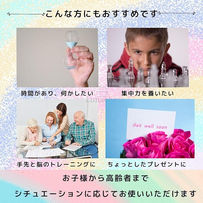 【プレゼントに最適】子供から大人まで楽しめるLunacheのダイヤモンドアートキットは、誕生日、クリスマス、入学祝いなど、特別な日のギフトに最適です。完成した作品は、お部屋のインテリアとしても楽しめます。