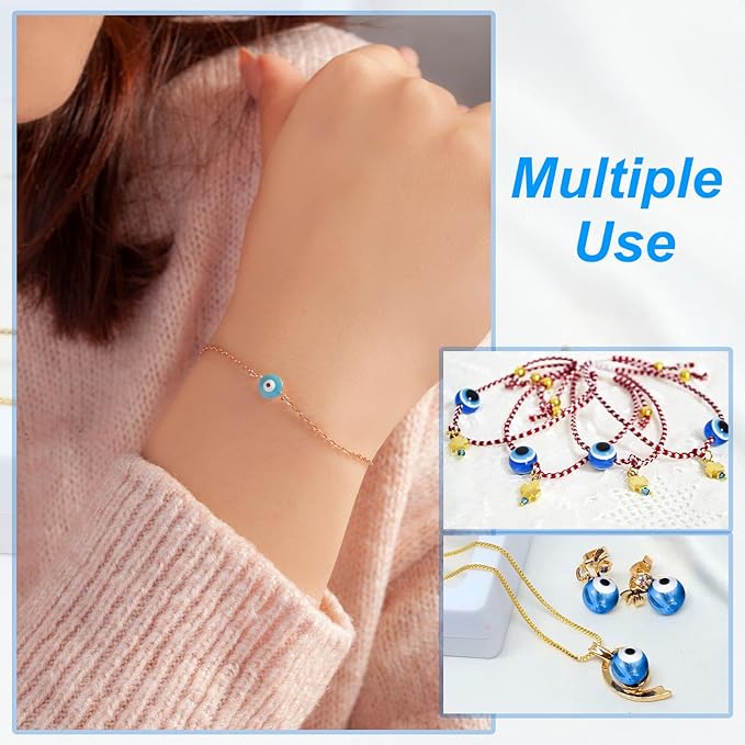 利点:ガラス素材を採用し、邪眼ビーズは耐久性と色あせに対する耐性を確保し、優れた硬度を提供します。滑らかな表面と鮮やかな色彩を特徴とするその精巧なデザインは、スタイリッシュで視覚的に魅力的な装飾アクセサリーとして、あなたのユニークなスタイルを反映します。