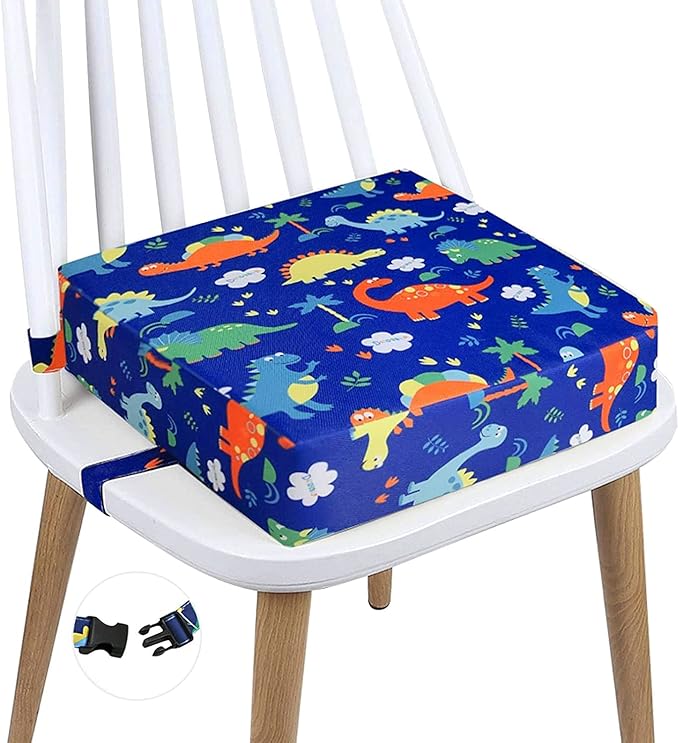 Taeku 食事 クッション, こども取り外し可能 座布団 椅子用 ダイニング チェアクッションキッズ用 ウォッシャブル 厚い チェア シート パッド マット (恐竜ブルー)