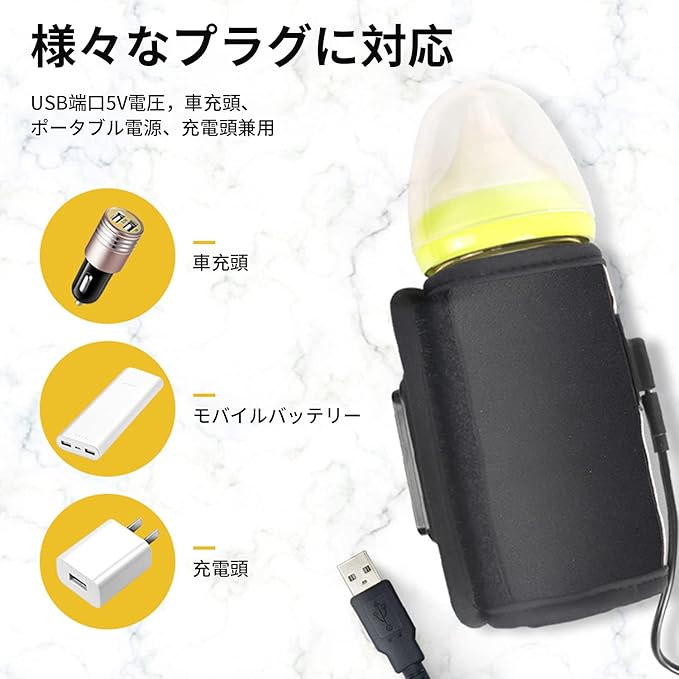 TOWOOZ ボトルウォーマー ミルクウォーマー USB充電 哺乳瓶カバー ミルク保温器 操作簡単 保温哺乳びんポーチ 軽量 5V/2A低電圧入力 アウトドア
