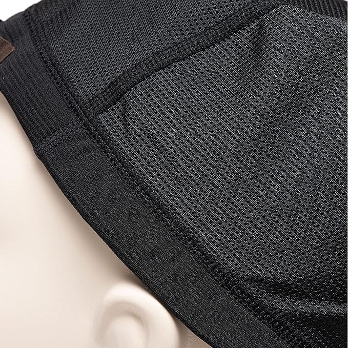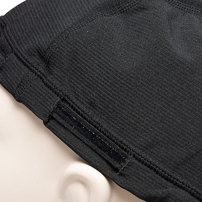 【しっかりフィット】サイズ調整ができるアジャスターベルトと伸縮性のある素材で頭部を覆います。