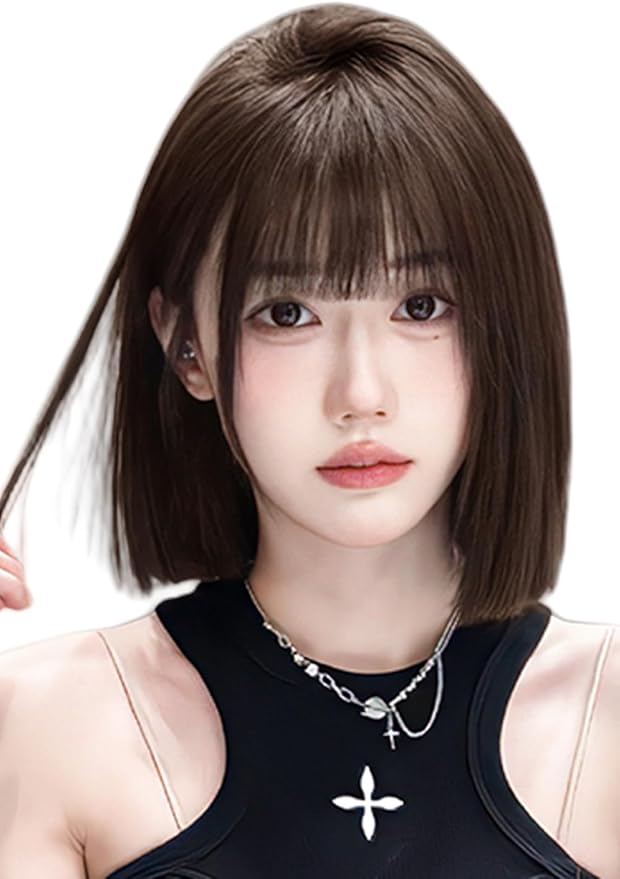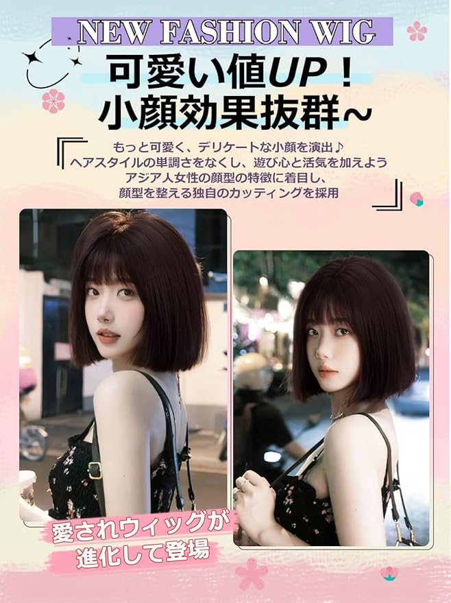 ウィッグ ショートボブ ストレート フルウイッグ 漫画 レディース さらさら 女性用 ファッション ぱっつん前髪 小顔 自然 原宿 おしゃれ 耐熱 可愛い変身 ネット付き