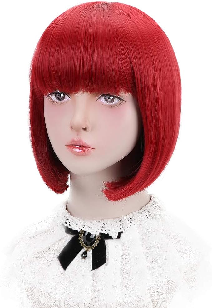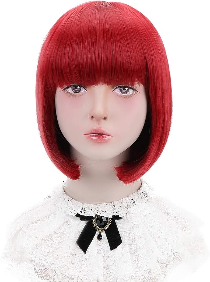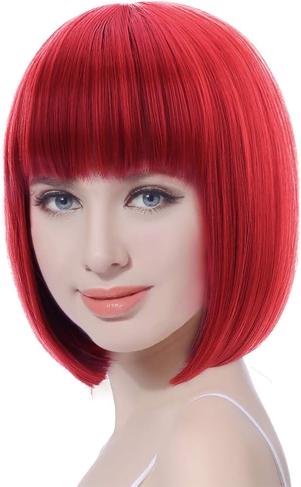 ウィッグ ボブ ショート フルウィッグ レディース 小顔 カツラ ネット付き 耐熱 カラフル 17色選択可 (レッド)