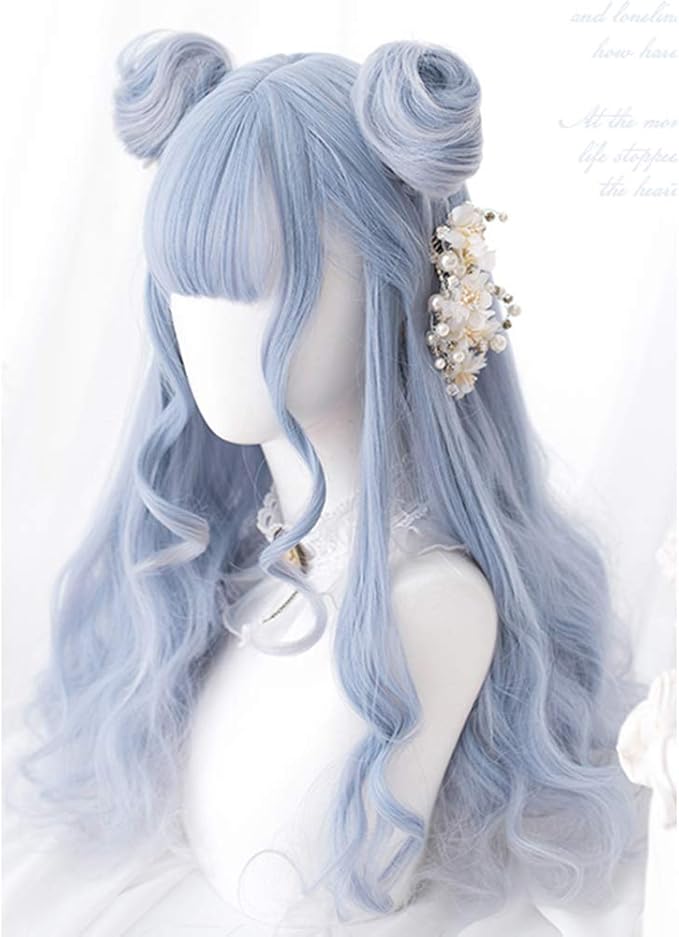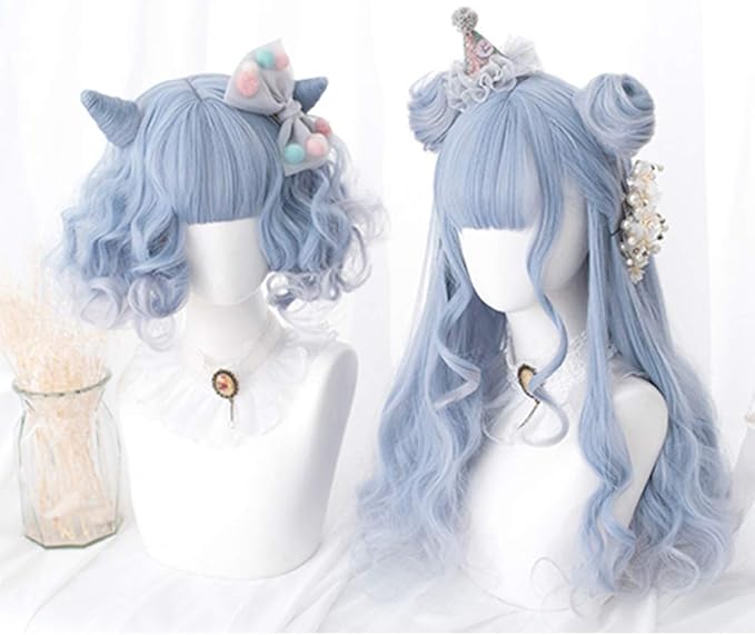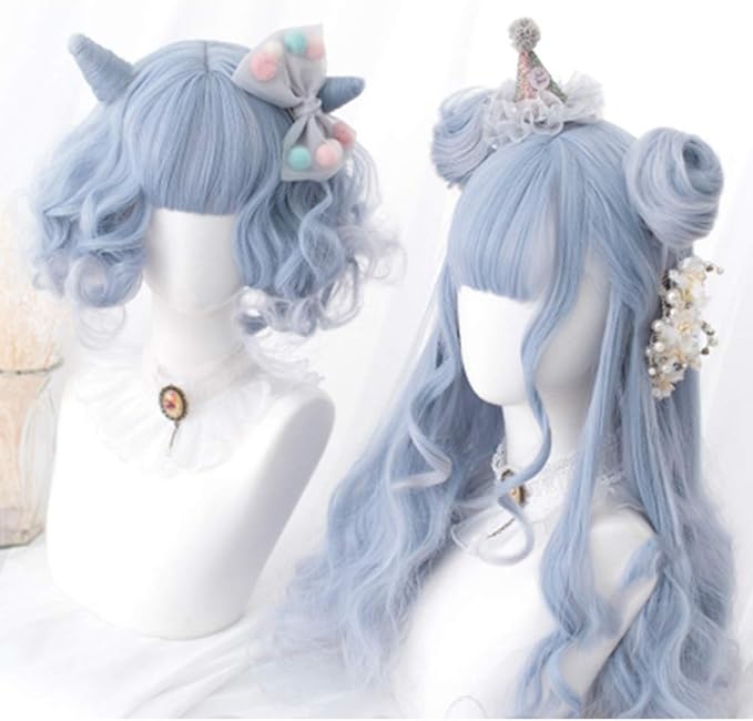 ウィッグ 原宿風 ロリータ コスプレ ショート セミロング GAL系 耐熱 ゴスロリ ロリィタ lolita風 レディース (水色) 巻き髪 森ガール ゆめかわいい お姫 小顔 日常 パーティー 仮装 ウィッグ かつら wig (水色ロング)