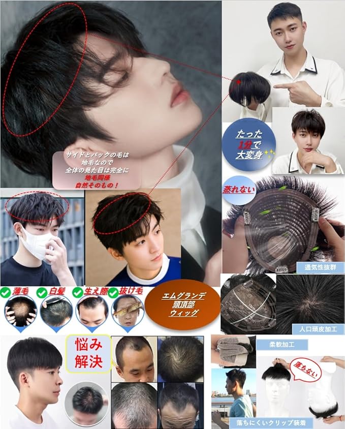 エムグランデ 頭頂部ウィッグ 【現役トップスタイリスト監修】 4点セット メンズ MENS かつら topwig 頭頂部 自然 小顔効果 (クールブラウンTOP09A)