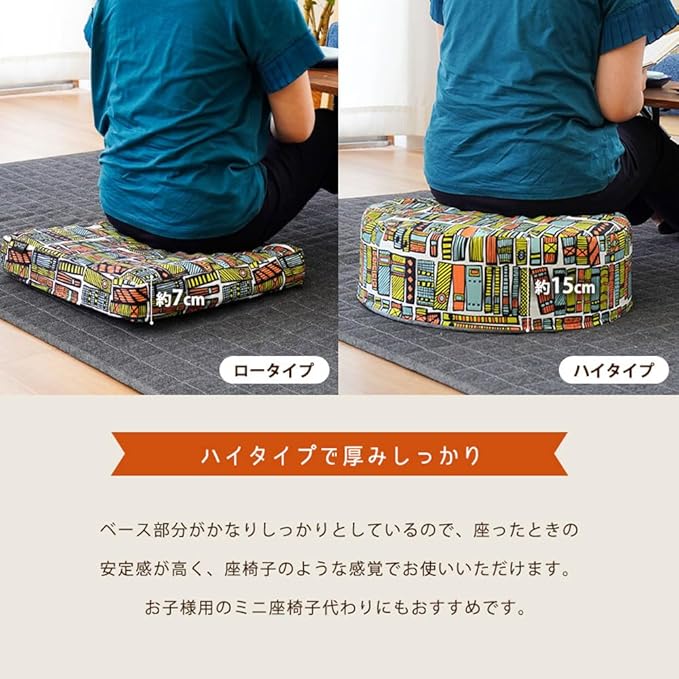 クッション 【座り疲れをラクにするシートクッション】 「ルクトウッカ」 約45R 15cm ラウンド ハイタイプ 座布団 綿100% 北欧調 円形 日本製 在宅勤務 在宅ワーク リモートワーク テレワーク 凸凹ウレタン 滑り止め付き おしゃれ 厚め 厚