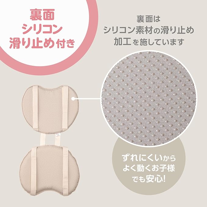 ●固定用ベルトでベビーチェアとクッションをしっかりと固定でき、ズレを防ぎます。
