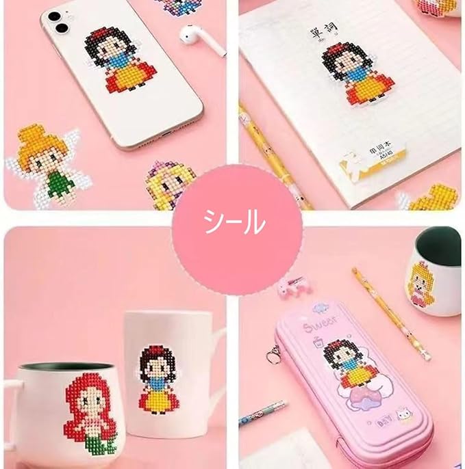 ツール内容:5dダイヤモンドビーズ、トレイ*1、ダイヤモンドペン*1、接着剤粘土*1、キャラクター対応シール。