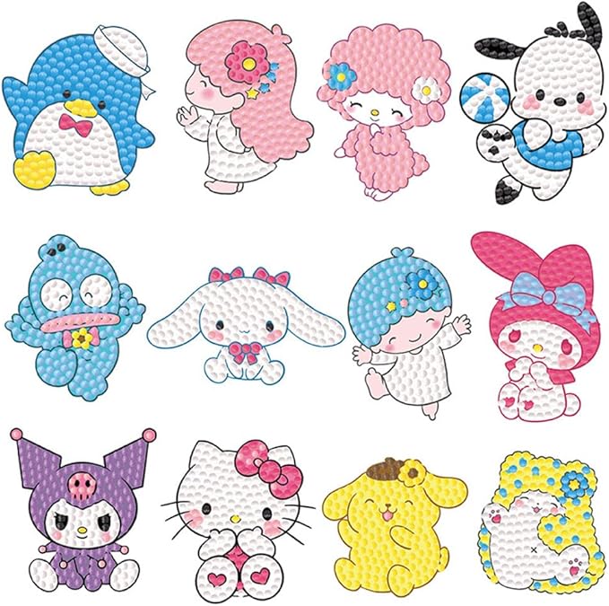 ダイヤモンドペインティング シール 子供 24枚 5Dビーズアート 可愛い キャラクター 女の子 男の子 集中 DIY キット 手芸 プレゼント
