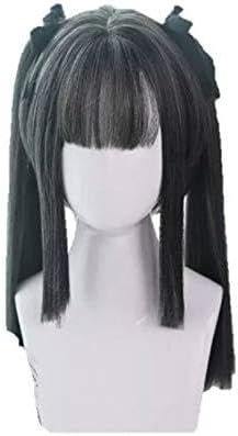ツインテール アッシュ エクステ付き フルウィッグ wig ナチュラル サラツヤ 姫カット ストレート 原宿系 ハロウィン コスプレ エクステ コミケ 夏コミ(スタンド,ウイッグネット,専用櫛付) 4点セット