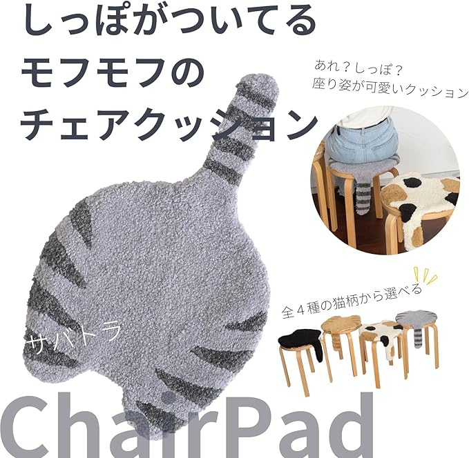 テクノプライム(Techno Prime) アンドパッカブル ふわふわ猫のしっぽ 椅子 クッション チェアパッド 34x53.5cm テール サバトラ 猫 柄 75007