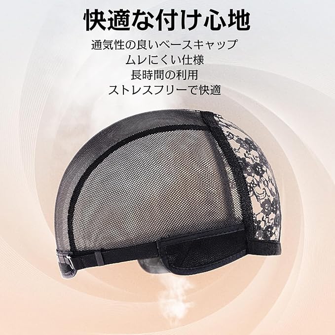 【通気性抜群】バラメッシュ仕様で、通気性と伸縮性に抜群です。付属のアジャスターで個々の頭のサイズに合わせた調整が可能です。肌触りが良い生地なので頭皮への負担も少なく、ウィッグ装着時も快適にお過ごしいただけます。