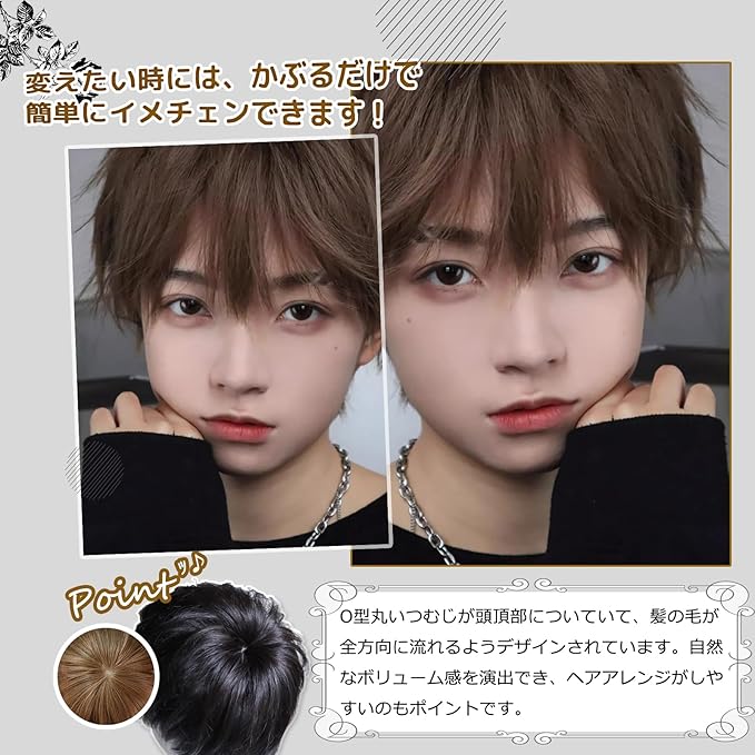 【ヘアスタイル】カジュアルショートメンズカツラ。前髪と後ろ髪は好みの長さにアレンジ可能!写真はモデルさんが形を整えているので、実際の商品は自分の好きなスタイル整えることが出来ます。