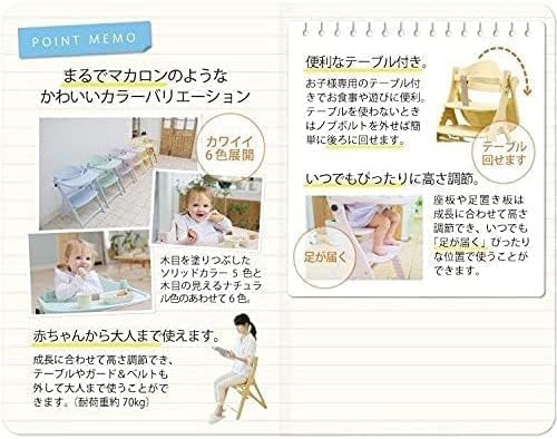 マカロンをイメージしたかわいらしいカラーバリエーションのチェア。 テーブルは使わない時にはノブボルトを外せば簡単に後ろに回せて便利。 成長に合わせて高さ調節できるので、いつも「足が届く」姿勢でお座りができキッズチェア大人も座れるチェアとして長くお使いいただけます。 専用のクッション付のお得なセットです。