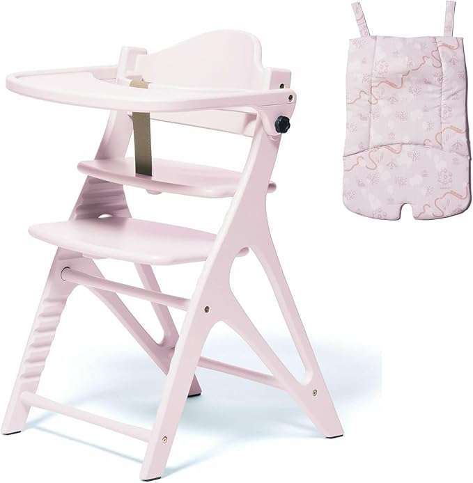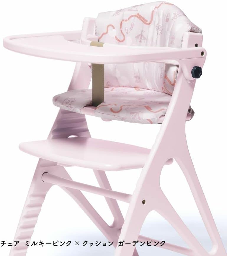 ベビーチェア キッズチェア アッフル AFFEL ハイタイプ ハイチェア 専用 クッション付 子供用椅子 木製 テーブル付 大和屋 yamatoya (A04 ミルキーピンク ガーデンピンク)