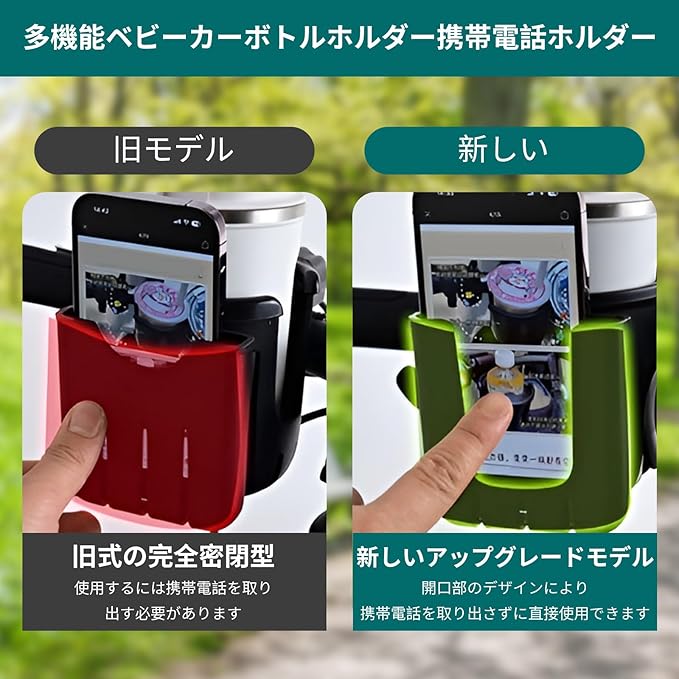 ポクミル ベビーカー ドリンクホルダー 携帯電話収納 取付簡単 大容量 多機能360度回転 角度調整 防水 耐久性のある カップホルダー ミルクティー 哺乳瓶 飲み物 シリコンカードスロット滑り止め 自転車 車椅子