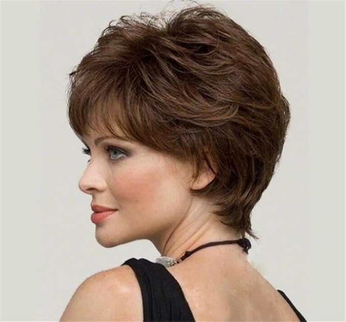 レディースウィッグ カール髪 ショートヘア 斜め前髪 かつら 耐熱 wig 自然 短い巻き毛 フルウィッグ 白髪隠し 母のウィッグ コスプレ 髪型変わり ネット付き おしゃれ 欧米スタイル (ブラウン)