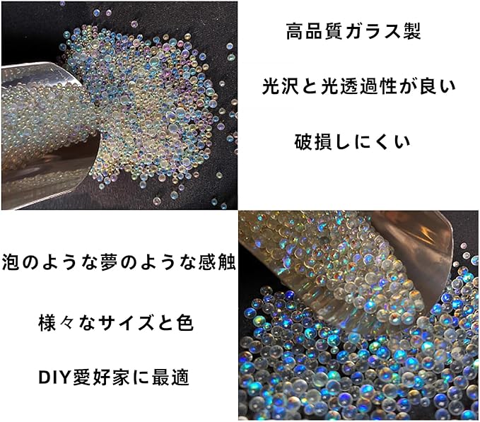 穴なしビーズ バブルビーズ レジン封入ビーズ DIY クラフト 1-3mm ガラスビーズ ネイルパーツ 約200g 装飾充填物 ラウンド ルース ビーズ ジュエリー作成用 ネイルアート・パール