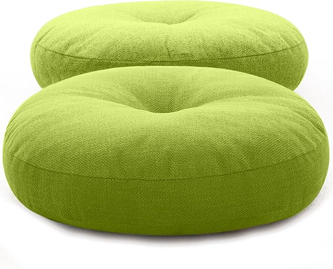座布団 フロアクッション 2個セット DPEAN 円形 丸 畳チェアパッド カバー付き 風合いドビー ごろ寝クッション 椅子用 チェアクッション オフィスチェアー用 和室 丸洗い おしゃれ ナチュラル(グリーン,約50cm)
