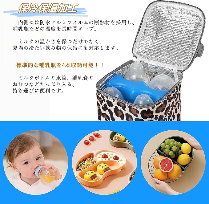 哺乳びんポーチ マルチポーチ ミルクポーチ 保温バッグ おむつポーチ 保温保冷 哺乳瓶バッグ 手持ちバッグ 哺乳瓶ケース お弁当バッグ ハンドバッグ ベビーカーバッグ 離乳食 お出かけ 旅行 通園 (豹柄)