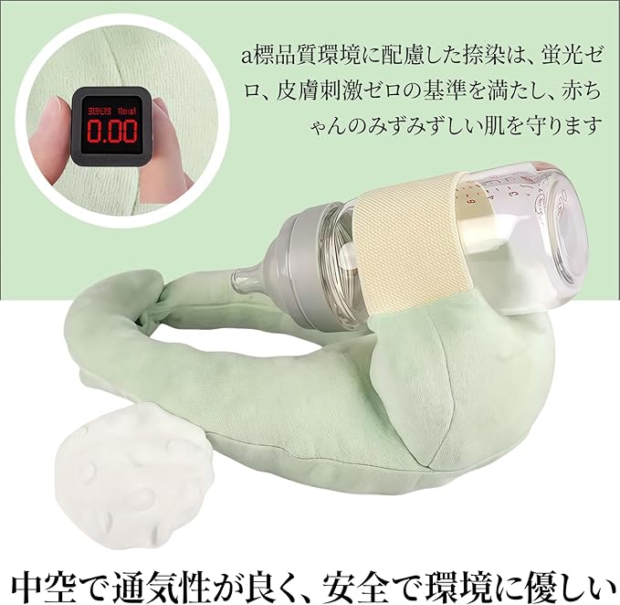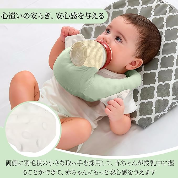 哺乳瓶ホルダー ハンズフリー授乳クッション 授乳枕 1人で飲める授乳クッション 自分で持てる 通気性 洗濯OK サイズ調整可能 赤ちゃんの自己給餌枕 ミルク 双子 多胎 夜間授乳 出産準備 出産祝い ギフト(スモールウィングスグリーン)