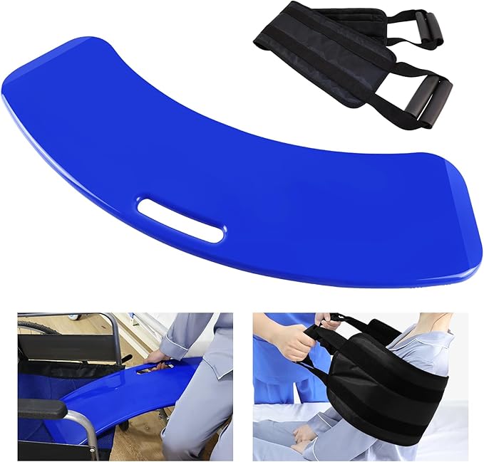 [LOSCHEN]移乗用ボード、高齢者用トランスファーボード、スライド式補助具 患者や障害者を車椅子からベッド、トイレ、風呂、車などに移乗させるためのもの - 移乗ベルト付きスライドボード(青)