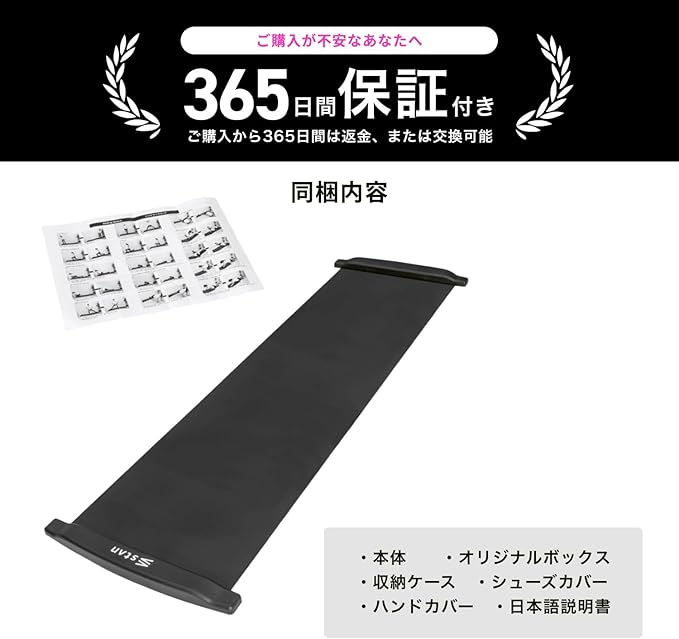 ✅【 充実の同梱内容 】本商品にはスライディングボード本体、専用シューズカバー、収納ネットのほかに日本語取扱説明書、ハンドカバーが同梱されております。そのため、ご購入いただければすぐにバリエーションに富んだトレーニングが開始できます。また、メーカー保証、日本人スタッフによるアフターサービスもご用意しておりますので、ご安心してお買い求めください。お子さんから大人まで楽しく行える家庭用筋トレグッズとして一家に1台いかがでしょうか。