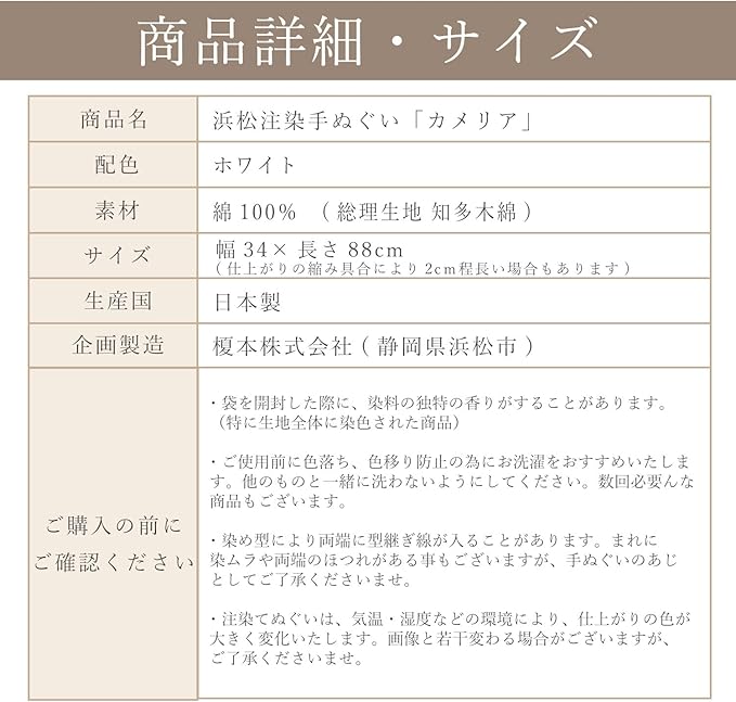 IKS 注染 手ぬぐい 日本製 34 88cm 花 「カメリア」 綿100% 総理生地 (切りっぱなし)