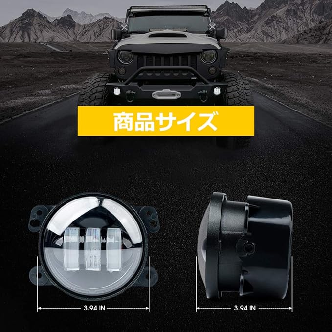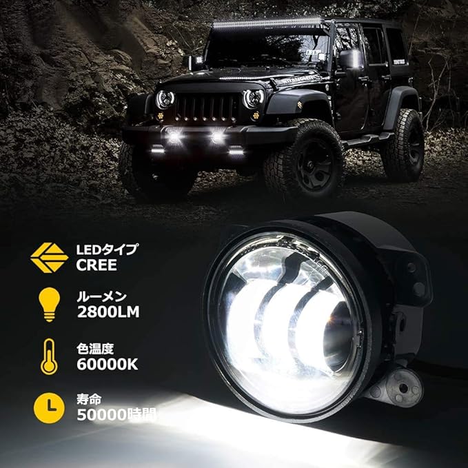 Largoods ジープ LED フォグライト 4インチ ラングラー JKに対応 ヘッドライト 補助灯 バンパーライト 丸型 取付簡単 6500K 高輝度 IP67防水防塵 50000時間 低消耗 ブラック 2個セット Samman