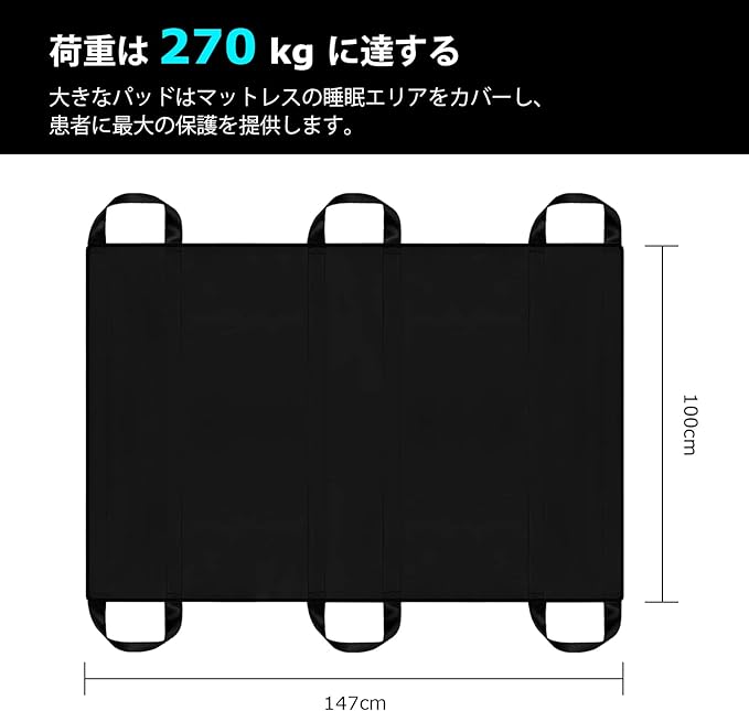 [LOSCHEN] 移乗シート 6ハンドル付き担架 一人用/二人用介護リフト 患者/高齢者移動サポート 負担減る 持ち運び可能介護シート (黒, 100*147cm)