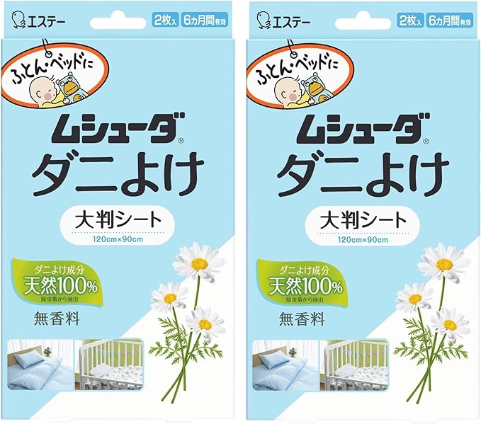 ムシューダ(ダニよけ) [まとめ買い] 大判シート ふとん ベッド ベビーベッド用 無香料 4枚入(2枚入 2個) 合成殺虫成分不使用(敷くだけ6ヵ月効果持続) 布団 ダニ除け シートタイプ