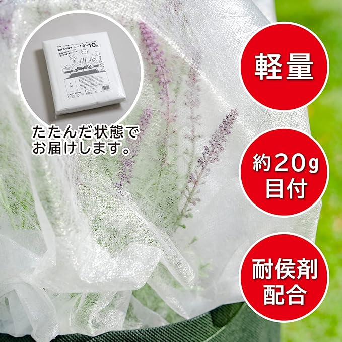 ●耐候剤配合で天候による劣化を引き起こしにくく、空気や光は通して植物を保護。