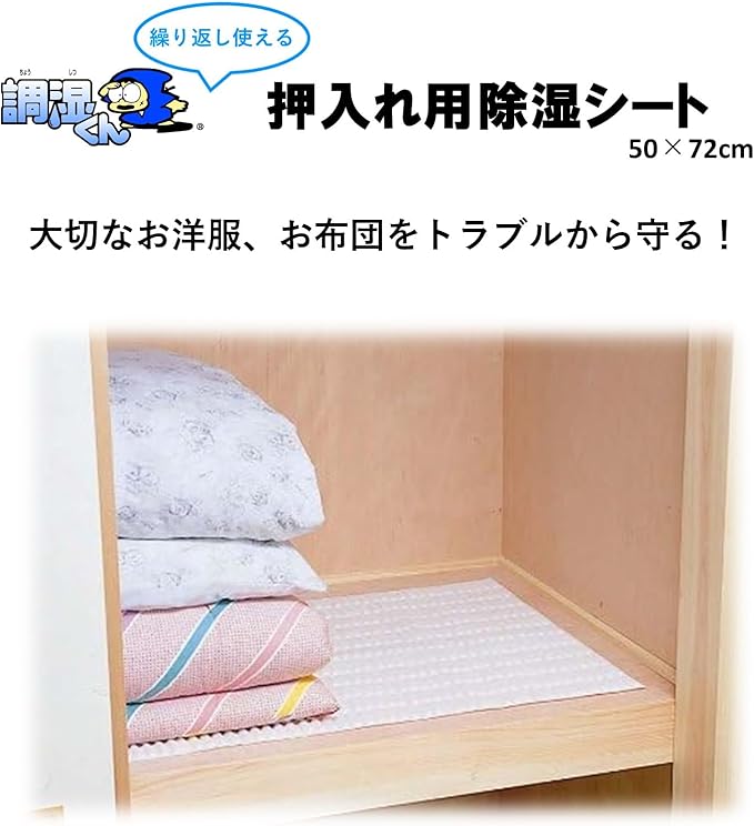 調湿くん 繰り返し使える 押入れ用除湿シート 50 72cm 水捨て不要 布団 押し入れ 除湿 消臭 カビ ダニ 衣類 除湿剤 湿気対策 ニオイ 吸湿 衣装ケース 繰り返し使える シリカゲル 湿気とり 湿気