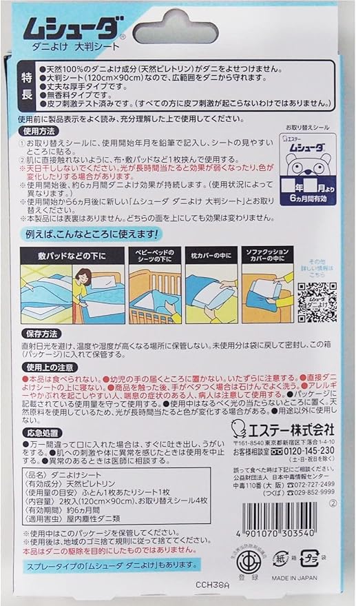 敷きふとんや敷きパッドの下に敷くだけ。6か月間ダニよけ効果が持続 続きを見る