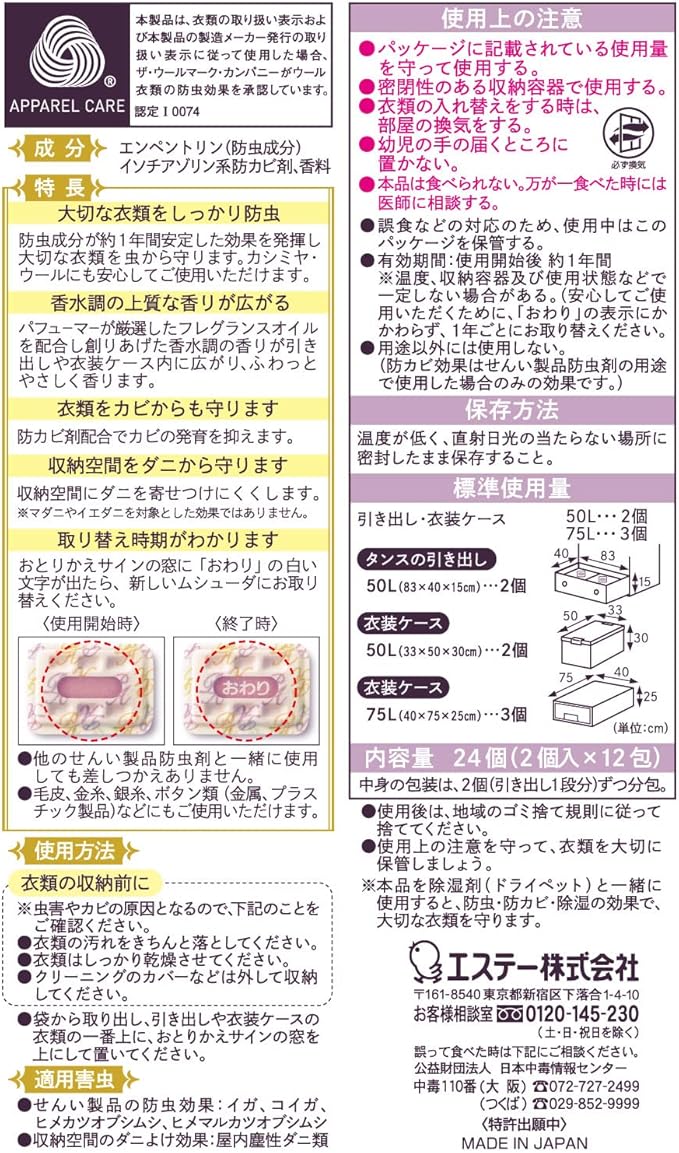 【用途】せんい製品防虫剤 引き出し 衣装ケース用