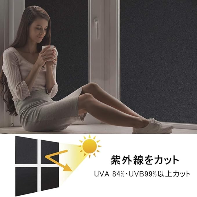 超遮光・目隠し:朝は光漏れが少なくなり、快適に目覚めます。夜、カーテンを開いても外から光が通さずよい睡眠をお守ります。真っ黒で不透明な目隠しフィルムなので、昼夜を問わず、外からちっとも見えなく、プライバシーをしっかり保護します。ご注意:設置の成功は貼り方次第です。商品の説明ページの使い方と注意事項を丁寧にお読みください。