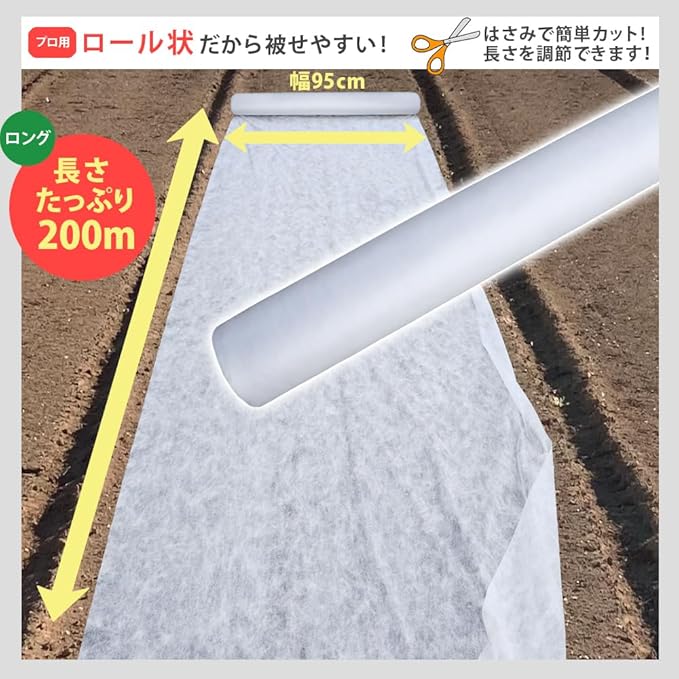 国産 日本製 不織布 農業用シート 育苗 栽培 園芸用 (パオシート 白 95cm 200m(ポリプロピレン製))