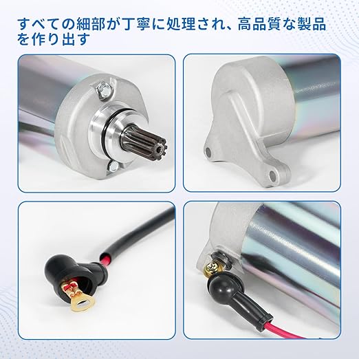 【製品の特徴】本社のバイクのセルモーターは、高い始動トルク、迅速な反応、高温耐性、防水設計があり、様々な環境で信頼性の高い始動を確保しています。また、コンパクトなサイズで取り付けやすく、メンテナンスも簡単です。通常、長寿命で良好なエネルギー効率を持っています。