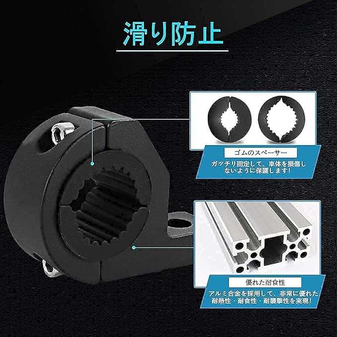【製品について】材質:アルミ合金 サイズ:パイプ径15-31mm対応 取り付け簡単:穴開け加工せずに、取り付けできます!