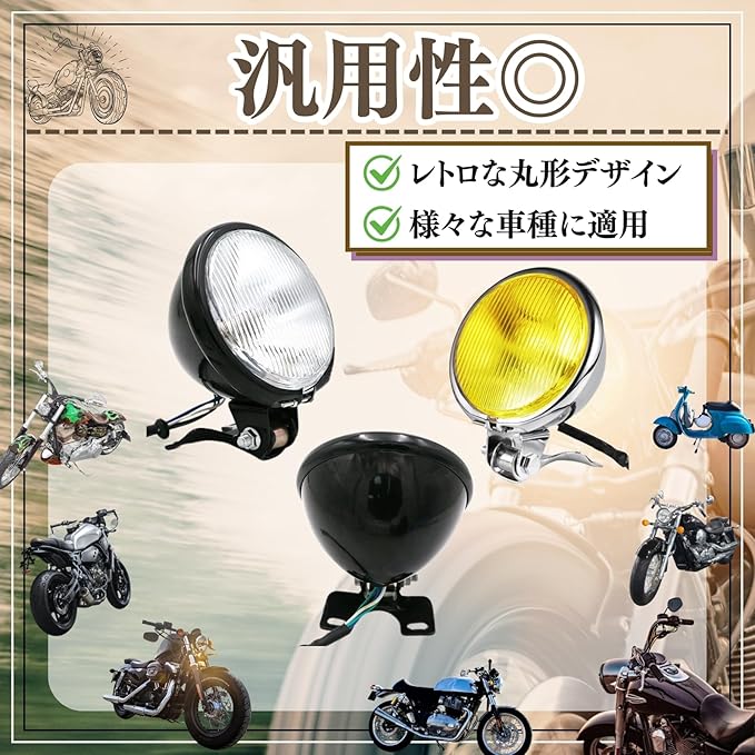 ✅【商品概要】12Vのハロゲン球を搭載し4.5インチのヘッドライトです。バイクの走行時に優れた視認性を提供します。