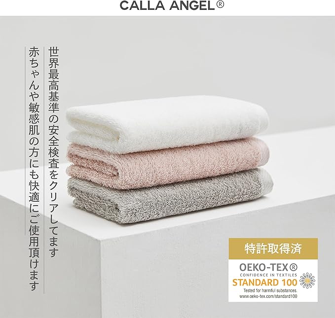 【OEKO-TEX認証取得 – 敏感肌にも信頼の品質】 弊社のラグジュアリータオルは、人にも環境にも優しく作りあげているタオルです。世界最高水準の安全な繊維製品の証である「エコテックス認証済:スタンダード100(STANDARD100 by OEKO-TEX:認証済)」の製品クラスⅠとして認証されています。漂白剤、蛍光塗料などの有害物質は一切使用していない為、赤ちゃんや敏感肌の方にも快適にご使用頂けます。