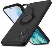Galaxy A52 5G 用 ケース リング シリコン レンズ保護 薄型 360 回転 車載ホルダー TPU 一体型 防水 軽量 ストラップホール 黄変防止 四隅衝撃吸収 おしゃれ 滑り止め フィット感 ギャラクシーa52 用 液状シリコンカバー 黒 AYS-21-110