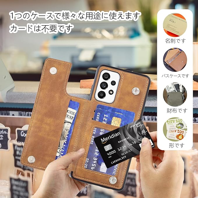 for Galaxy A52 5G SC-53B ケース スタンド機能 ケース ICカード収納 カード 背面カード収納 左と右の電話ケースを反転、シンプルなレトロなファッション、防水と防汚電話ホルダー、多機能財布収納付き、PUレザー、TPUソフトインナー(ブラウン)