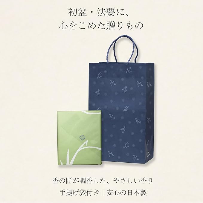 ■ 香りと品質の特長 ・創業300年の老舗による調香のハーモニー ・白檀とフローラル天然香料を調合したやさしい香り ・煙が少なく、お部屋の空気を汚しにくい設計