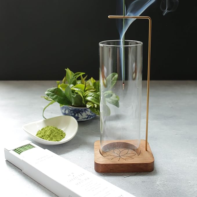原料の10%に京都宇治の抹茶を調合、さらに白檀(びゃくだん)、藿香(かっこう)、丁子(ちょうじ)を調合した、緑茶と抹茶の香りのお線香です。