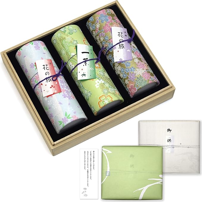 ■ 商品構成 ・花くらべ3種 各1箱 ・桐箱入り贈答仕様 ・線香の長さ:約13.5cm ・燃焼時間:約25分