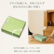 ■ 香りと品質の特長 ・創業300年の老舗による調香のハーモニー ・白檀とフローラル天然香料を調合したやさしい香り ・煙が少なく、お部屋の空気を汚しにくい設計