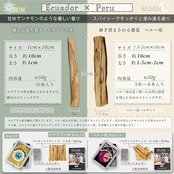 【入り数】・ぺルー産:50g/5本~6本 ・エクアドル産:50g/10本(袋入り、ボックス入り両方入り数は同じです。)【ボックス入りタイプ】・パロサント約50g/ご使用説明書/パロサントホルダー【袋タイプ】パロサント約50g入り/ご使用説明書