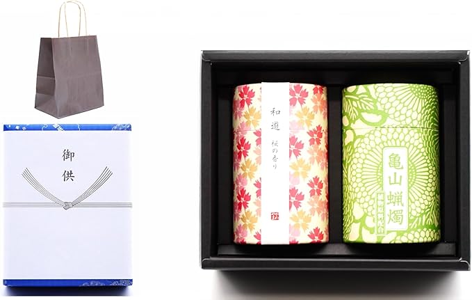 和遊SDGsセット 線香・ススの出ない蝋燭セット ミニ寸サイズ ススの出ない蝋燭 御供入り熨斗付き 御供 喪中御見舞・ギフト・進物線香 (手提げ袋付き 桜の香り)