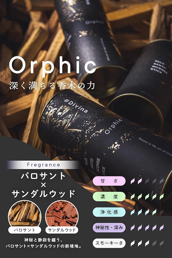 #Divina Orphic パロサントのお香 サンダルウッドと織りなす神秘的な香り 30本入り 燃焼時間15-17分